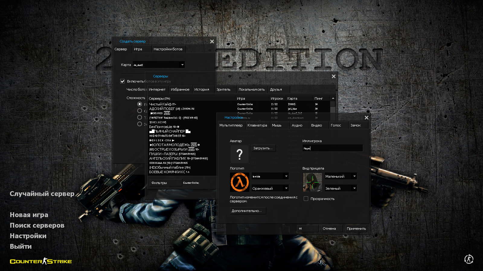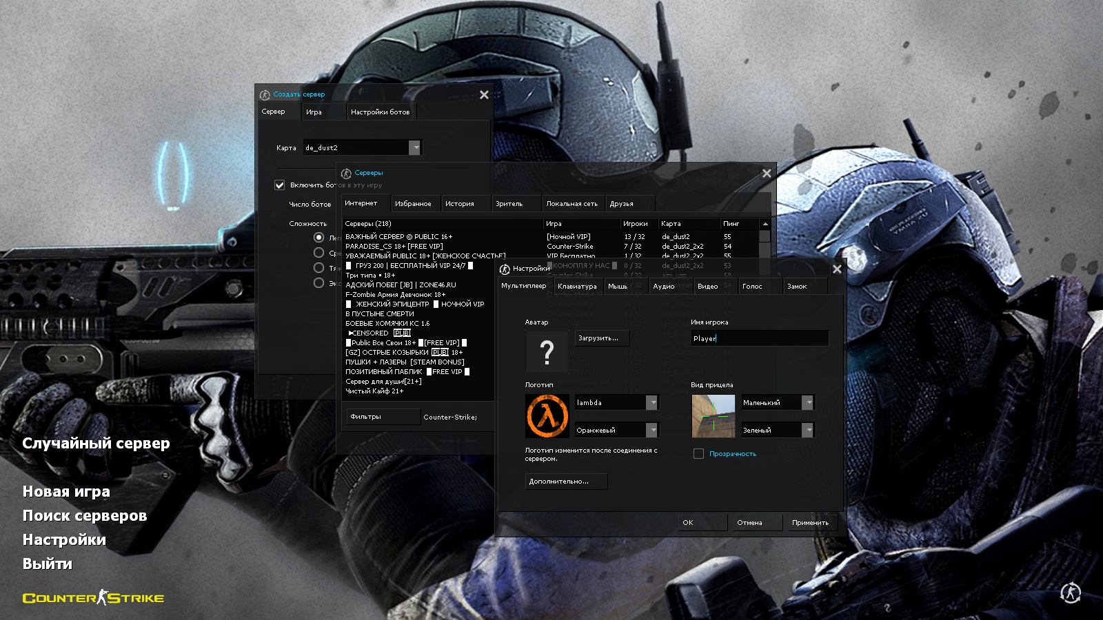 CS 1.6 2016 года — это прокачанная сборка Counter-Strike с 9 новинками, среди которых: 30 детализированных моделей оружия, темная полупрозрачная тема меню с голубыми элементами, контр-террористы, стоящие спина к спине с P90 и SG-552 в качестве фона главного меню и оптимизированный конфиг. Помимо этого, обновление получили: звуки, музыка в меню, небо, радар и значок запуска.Также сборка обладает всеми возможностями оригинальной игры: работает на всех версиях Windows, можно играть как онлайн (250+ серверов), так и с ботами на любых картах, ставить русский никнейм и писать в чате по-русски, устанавливать любые моды.