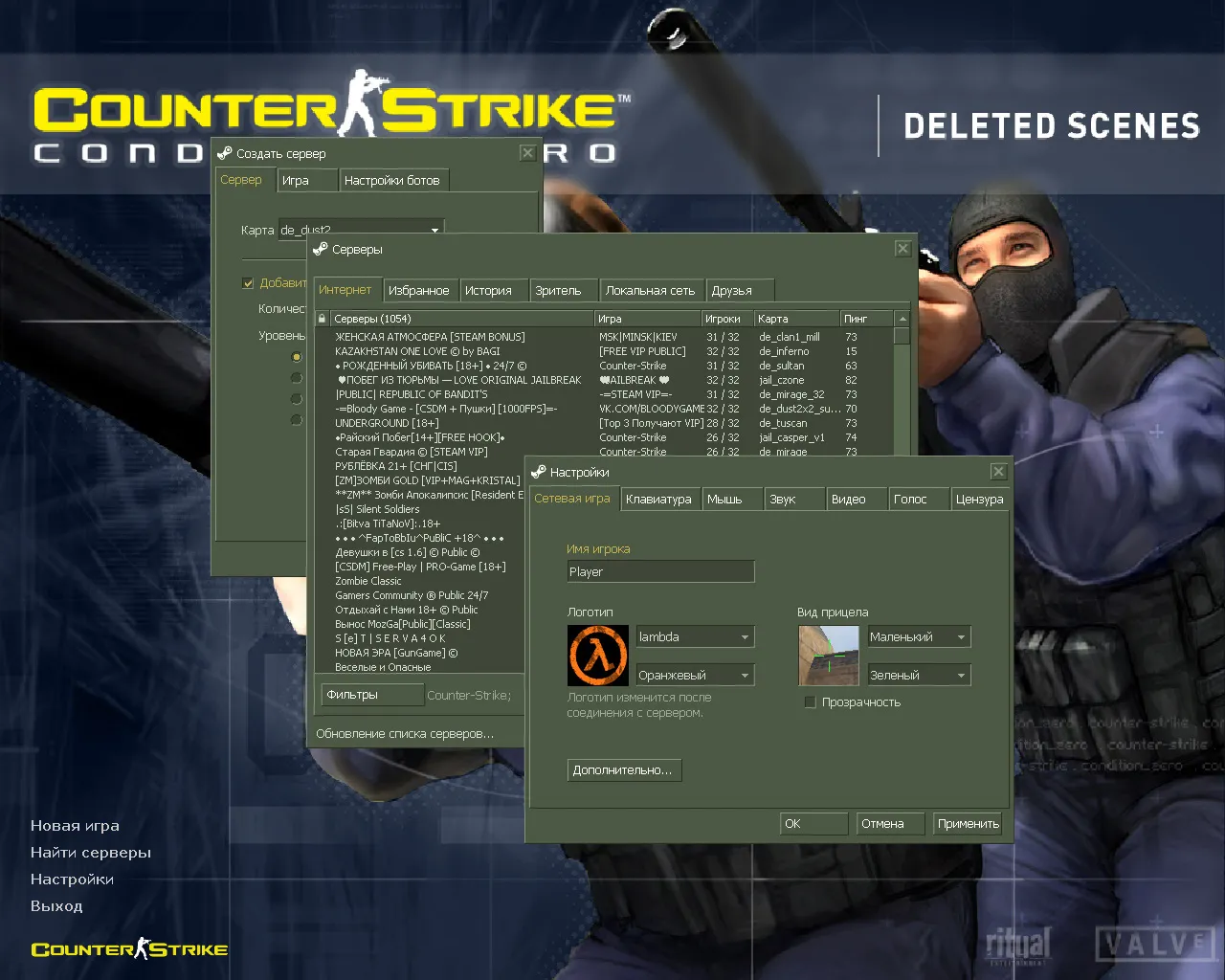 CS 1.6 CSO — это прокачанная сборка Counter-Strike с 11 обновлениями, среди которых: модели оружия из игры CS:Online 2, красные и синие модели игроков, темная тема меню и фон с персонажами игры CS:Online 2 в качестве фона главного меню. Помимо этого, обновление получили: звуки, музыка в меню, текстуры карт, небо, радар, снайперский прицел и значок запуска.Также сборка обладает всеми возможностями оригинальной игры: работает на всех версиях Windows, можно играть как онлайн (250+ серверов), так и с ботами на любых картах, ставить русский никнейм и писать в чате по-русски, устанавливать любые моды.