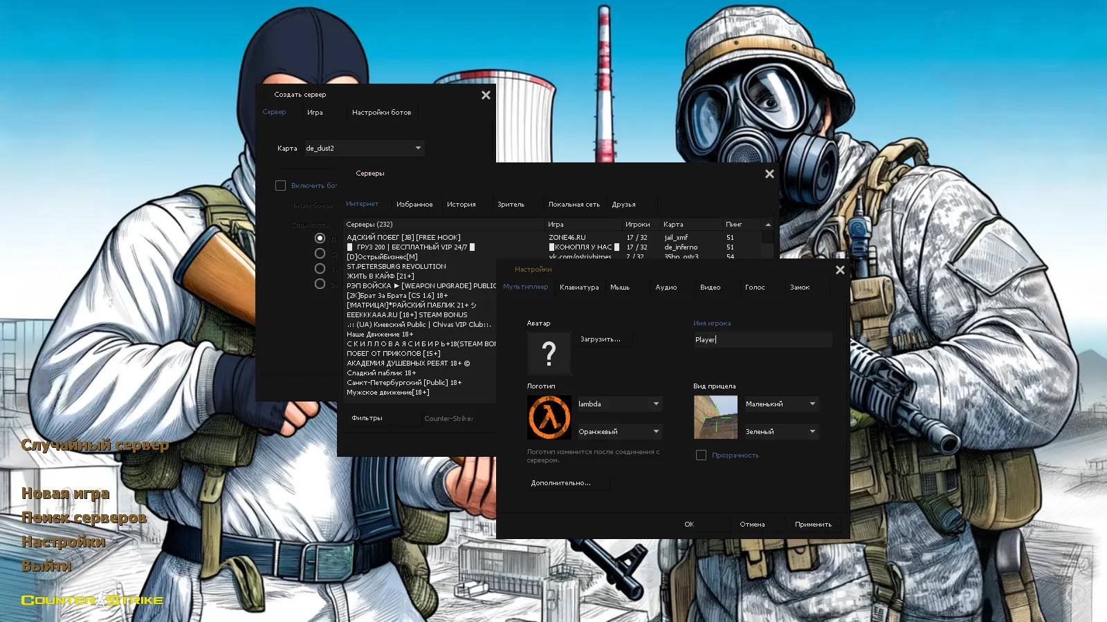 CS 1.6 Improved — это прокачанная сборка Counter-Strike с 8 нововведениями, среди которых: 29 hd-моделей оружия, песчанная тема меню, солдат с пистолетом, пустыня и армейские бронеавтомобили в качестве фона главного меню и оптимизированный конфиг. Помимо этого, обновление получили: текстуры карт, небо, радар и значок запуска.Также сборка обладает всеми возможностями оригинальной игры: работает на всех версиях Windows, можно играть как онлайн (250+ серверов), так и с ботами на любых картах, ставить русский никнейм и писать в чате по-русски, устанавливать любые моды.