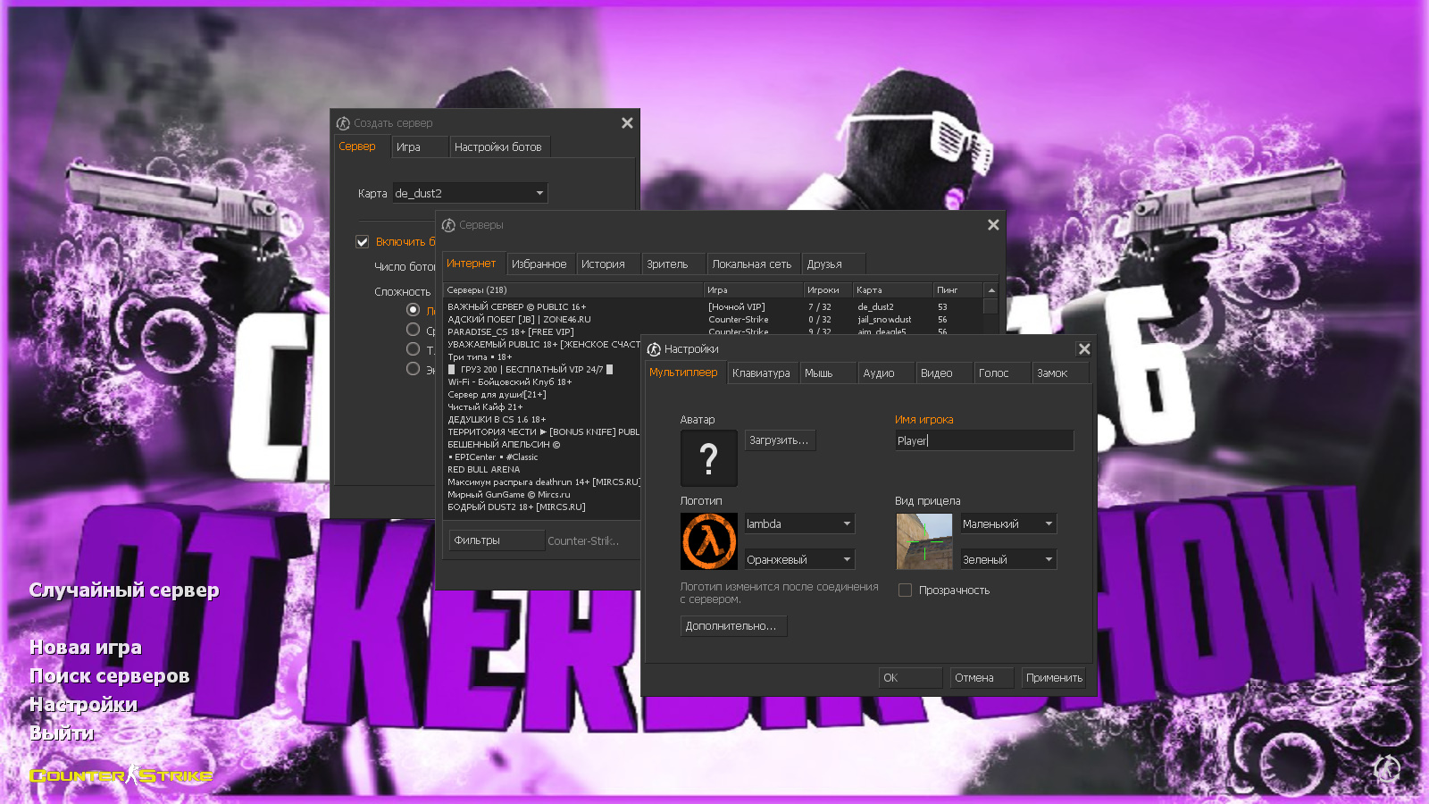 CS 1.6 от Октавиана — это сборка Counter-Strike от блогера с ютуб-канала Octavian cs (2+ тыс. подписчиков), которая содержит 4 изменения, а именно: 9 любимых скинов Октавиана на стандартных моделях оружия, фон в стиле канала, оптимизированный конфиг и значок запуска.Также сборка обладает всеми возможностями оригинальной игры: работает на всех версиях Windows, можно играть как онлайн (250+ серверов), так и с ботами на любых картах, ставить русский никнейм и писать в чате по-русски, устанавливать любые моды.