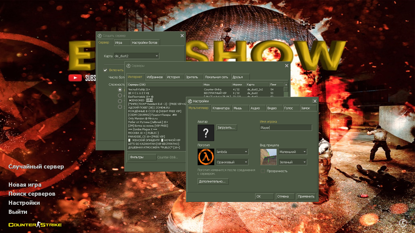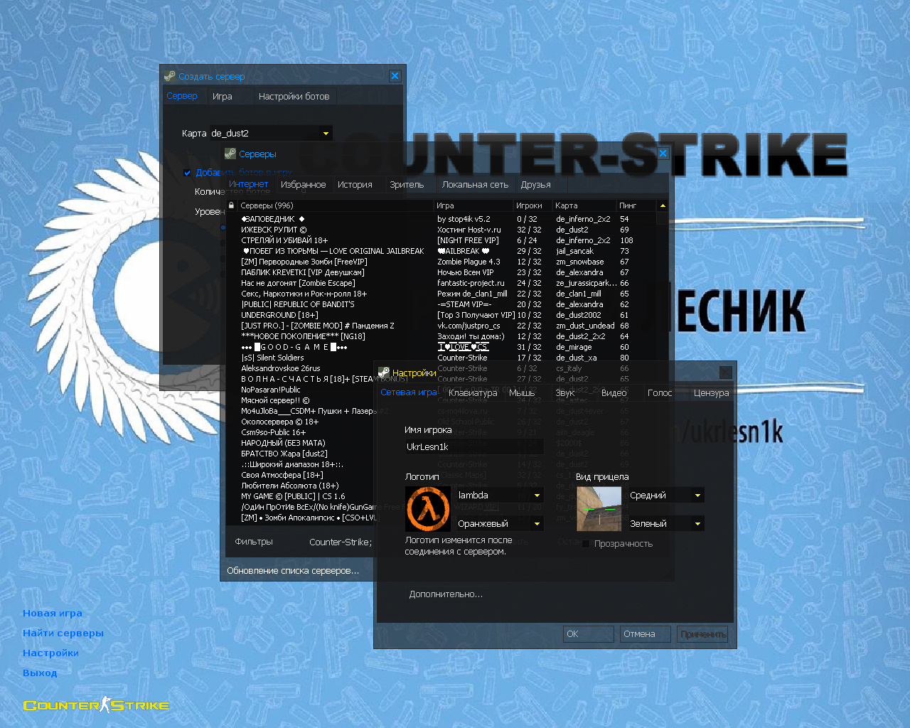 CS 1.6 от Украинского лесника — это сборка Counter-Strike от блогера с ютуб-канала Украинский Лесник (270+ тыс. подписчиков), которая содержит 7 таких изменений, как: Deagle | Повелитель леса и Кунг-фу, голубой фон в стиле канала, полупрозрачная тема меню и оригинальный конфиг Украинского лесника. Помимо этого, обновления получили: радар, музыка в меню и значок запуска.Также сборка обладает всеми возможностями оригинальной игры: работает на всех версиях Windows, можно играть как онлайн (250+ серверов), так и с ботами на любых картах, ставить русский никнейм и писать в чате по-русски, устанавливать любые моды.