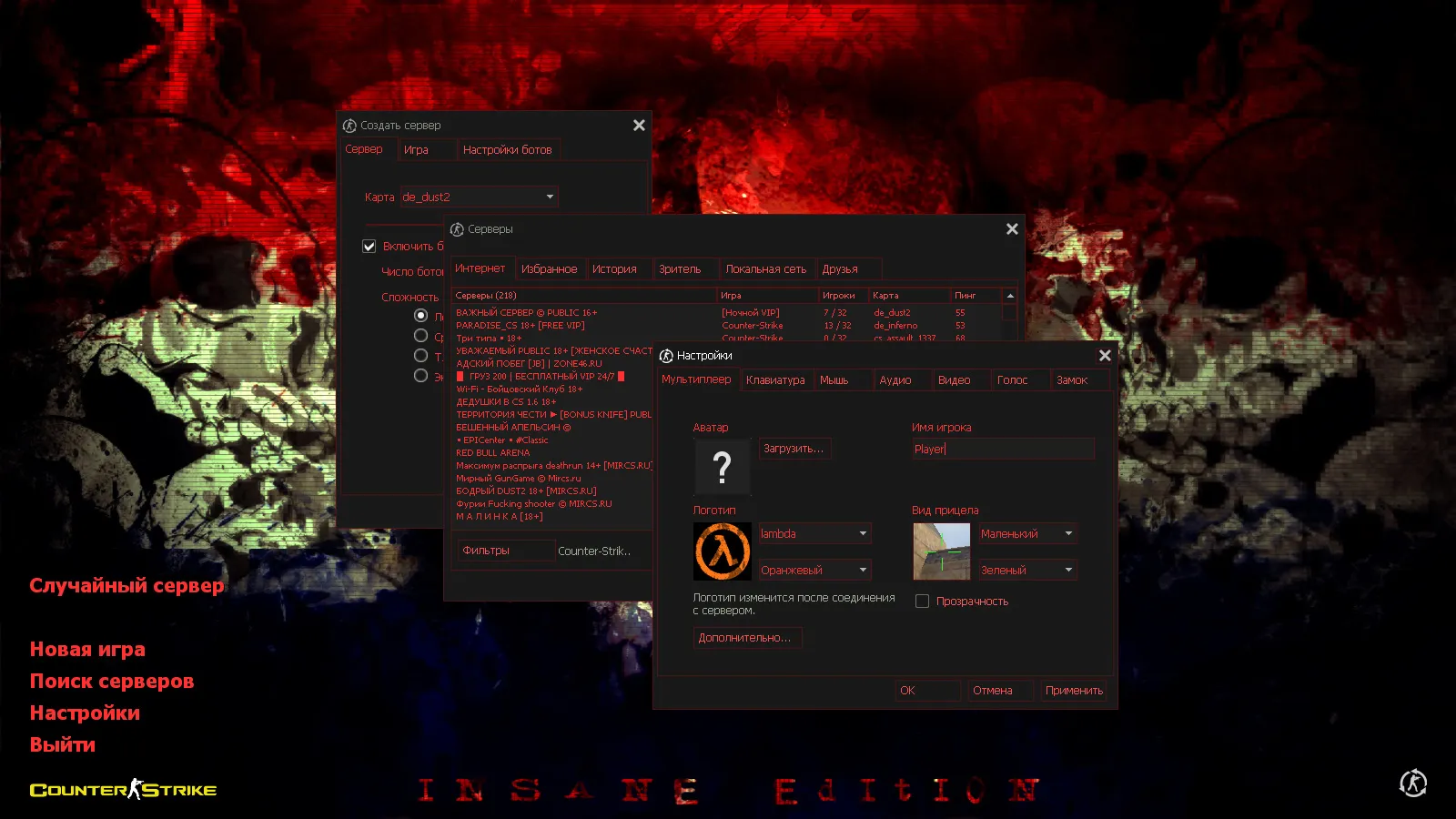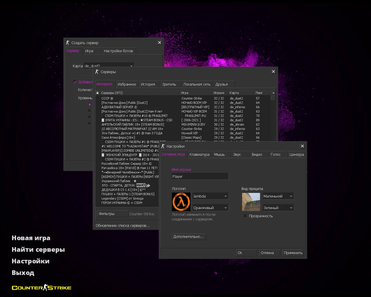 CS 1.6 Pulse — это прокачанная фиолетовая сборка Counter-Strike, которая содержит 10 изменений, а именно: 27 скинов оружия Pulse без анимации осмотра, красные и синие модели игроков, темная тема меню с фиолетовыми элементами, фон с анархистом из CS:GO и оптимизированный конфиг. Помимо этого, обновление получили: музыка в меню, звуки, снайперский прицел, радар и значок запуска.Также сборка обладает всеми возможностями оригинальной игры: работает на всех версиях Windows, можно играть как онлайн (250+ серверов), так и с ботами на любых картах, ставить русский никнейм и писать в чате по-русски, устанавливать любые моды.