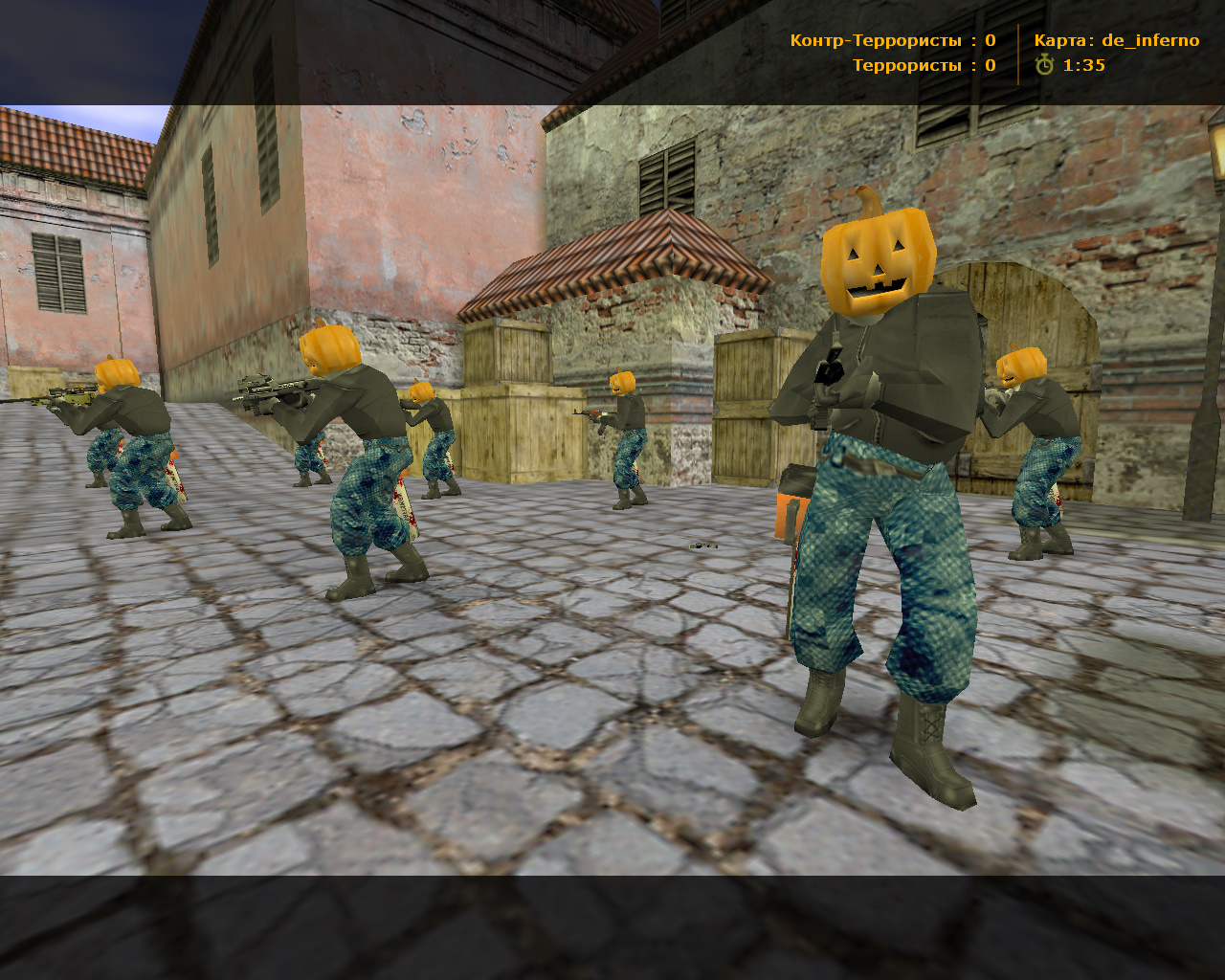 CS 1.6 «Хэллоуин» — это сборка Counter-Strike в стиле одноименного праздника, которая содержит 5 таких изменений, как: 5 моделей оружия в стиле Хэлоуин, кукла Билли из «Пилы» за спецназ, Тыквоголовый за террористов, серая тема с оранжевыми элементами, фон в стиле Хэллоуина и оптимизированный конфиг.Также сборка обладает всеми возможностями оригинальной игры: работает на всех версиях Windows, можно играть как онлайн (250+ серверов), так и с ботами на любых картах, ставить русский никнейм и писать в чате по-русски, устанавливать любые моды.