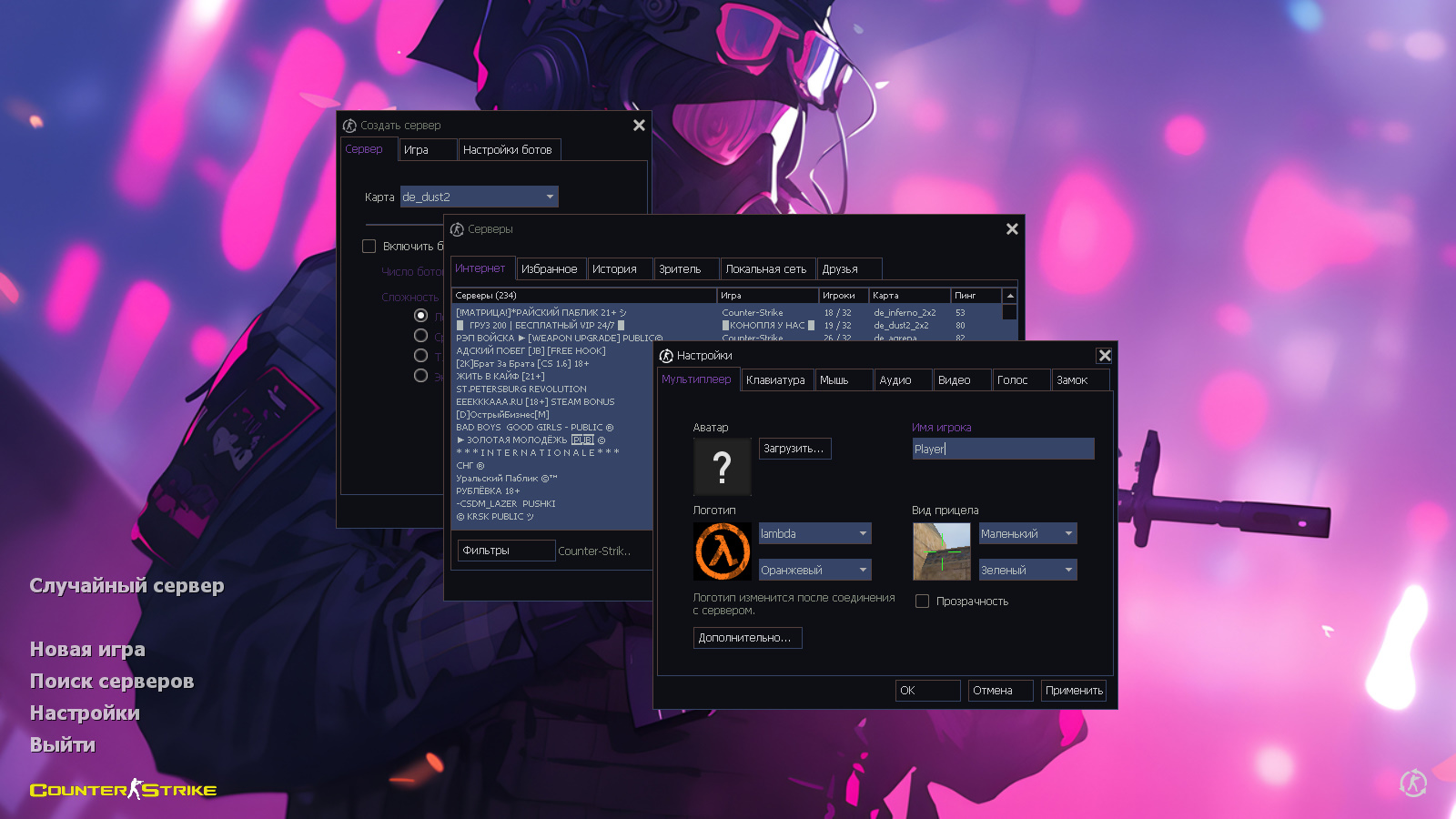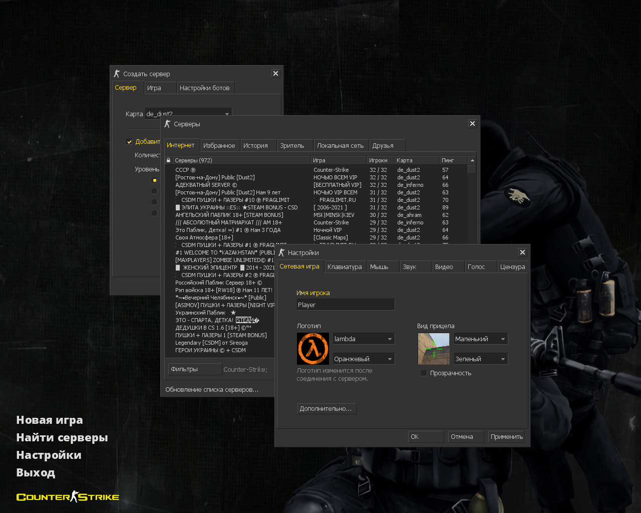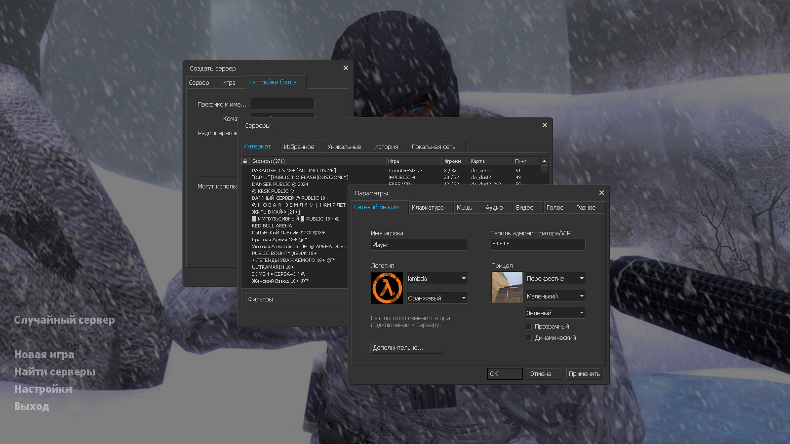 CS 1.6 Зимняя версия — это прокачанная сборка Counter-Strike с 6 новинками, среди которых: стандартные модели с рукавами «Снежный камуфляж», зимний камуфляж и КТ и террористов, темная тема меню и фон с террористом Arctic Avenger в зимней обстановке в качестве фона главного меню. Помимо этого, обновление получили: текстуры карт и значок запуска.Также сборка обладает всеми возможностями оригинальной игры: работает на всех версиях Windows, можно играть как онлайн (250+ серверов), так и с ботами на любых картах, ставить русский никнейм и писать в чате по-русски, устанавливать любые моды.