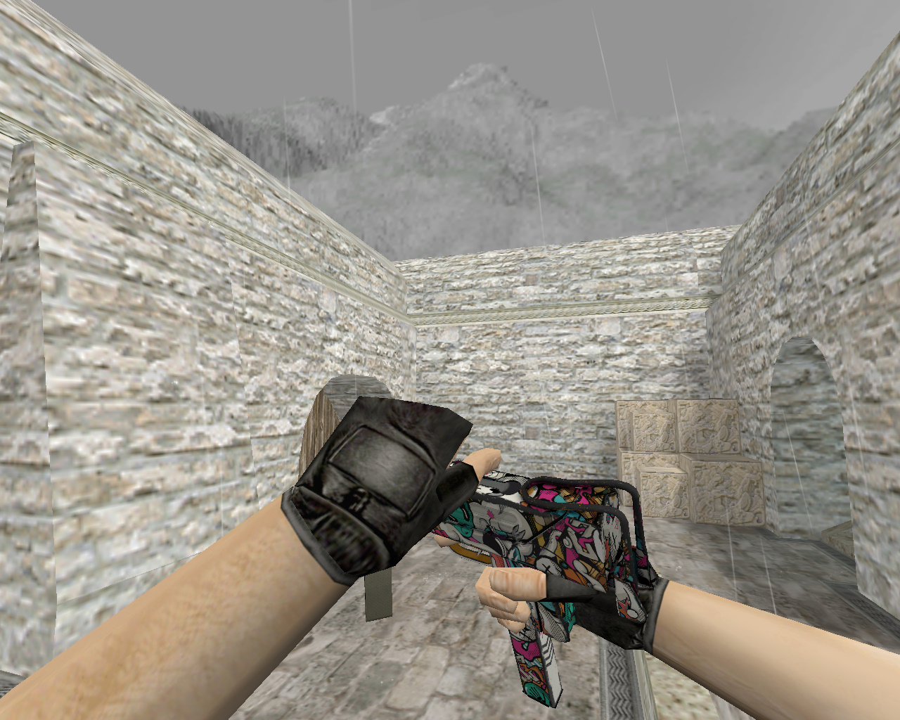 MAC-10 | Коробка с игрушками (Toybox) для CS 1.6 — скин из CS:GO кейса операции «Хищные воды» (Riptide), вышедшей 22 сентября 2021 г. Без анимации осмотра. На корпус нанесены яркие рисунки курочек, пришельцев, наборов разминирования и не только. Надо бы прибраться.